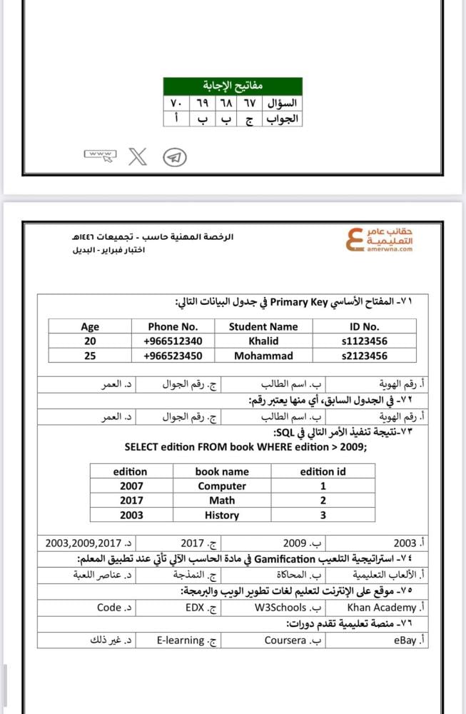 - أسئلة 1446 هـ: 76 سؤال (الاختبار الثالث)