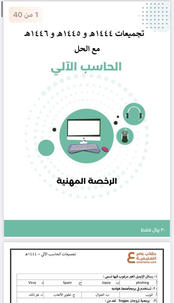 تجميعات أسئلة الرخصة المهنية الحاسب الآلي pdf
